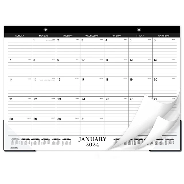 Each month features one page help. Or, if you prefer, you can hang this calendar on the wall with the included drill holes.